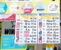 このあたりはスプレットは2円以下の良心的なお店。でも、最安値より1ドルにつき1円近く高いレートでした。